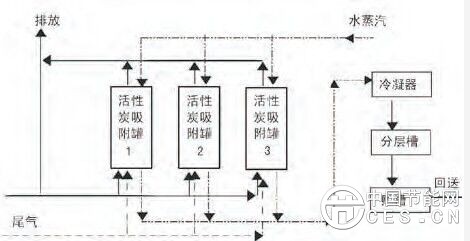 技术原理:当有机废气通过活性炭颗粒时,其中的有机物被颗粒碳的微孔吸附、截留,空气则得以净化后排放。在吸附饱和后,采用高温蒸汽脱附法,将吸附在活性炭颗粒孔径内的有机分子脱附出来并回收。